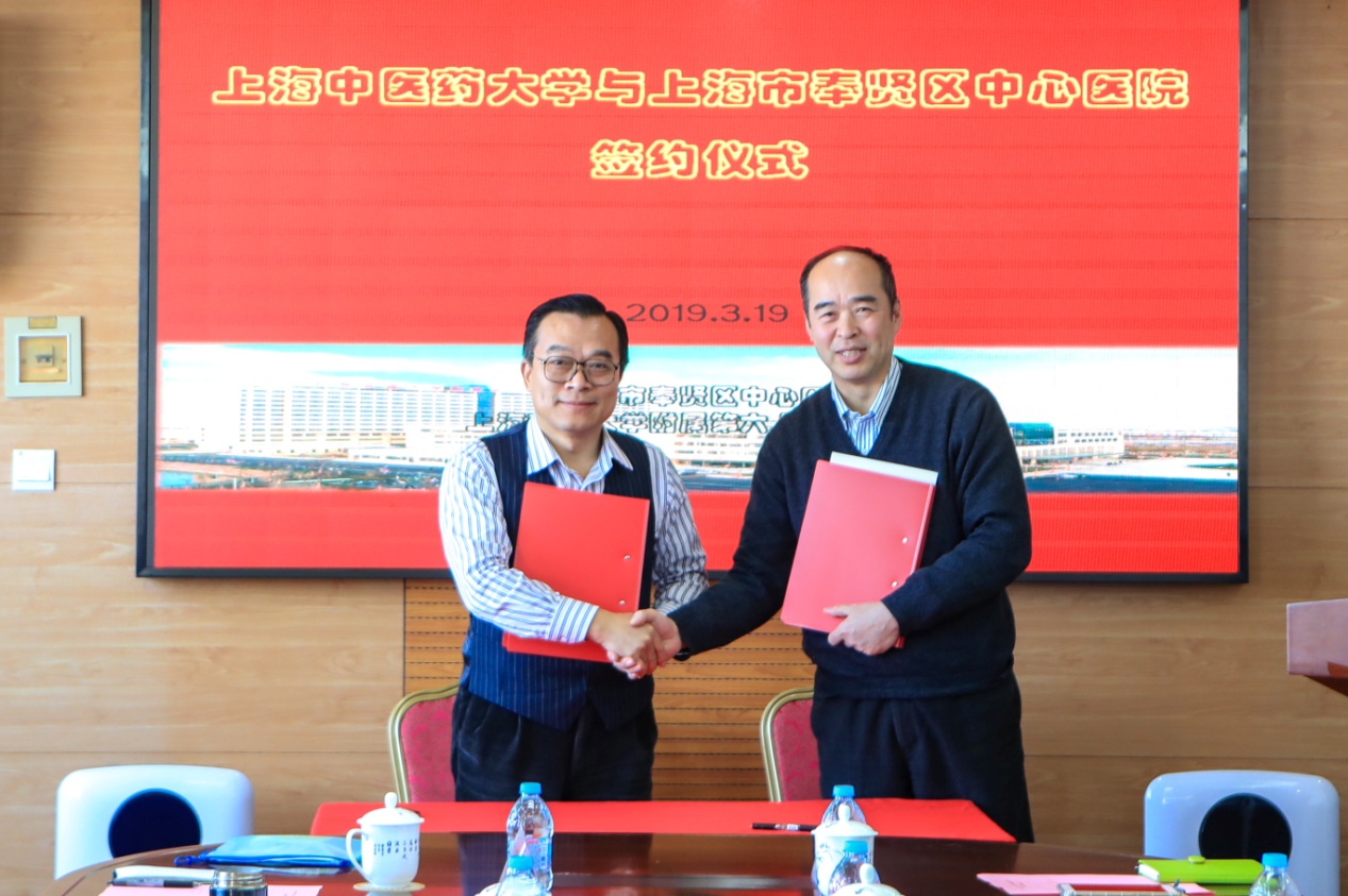 3月19日AV视频 徐宏喜院长带队赴奉贤中心医院就医疗联合专业技术人员工作开展技术协作签约仪式。中药教研室杨柏灿教授、数理教研室主任邵建华教授,学校张在良教授、李兆建教授、中药教研室袁颖副教授、张贵彪老师以及办公室主任夏瑜桢等人参与本次交流。