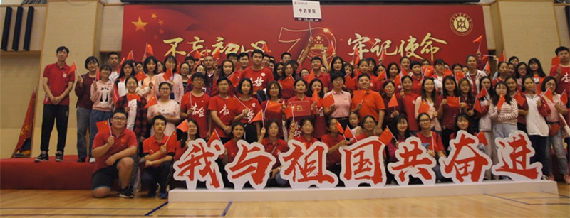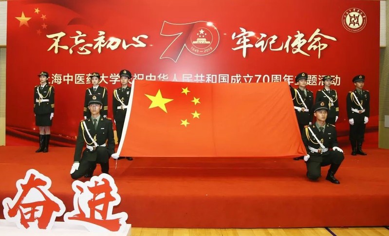 国庆节当日,101日上午730分,为庆祝祖国母亲生日,AV视频 研究生党总支参加了校党委组织“不忘初心、牢记使命”主题教育,师生共聚校体育馆,于800分,开始升旗仪式,奏唱国歌,喜迎国庆。随后,AV视频 党委书记曹锡康,校党委副书记、校长徐建光为获得“庆祝中华人民共和国成立70周年”纪念章的代表颁发纪念章;16位“星火红色基因”大学生讲解员们从初心、担当、使命三个角度发表慷慨激昂的爱国演说。