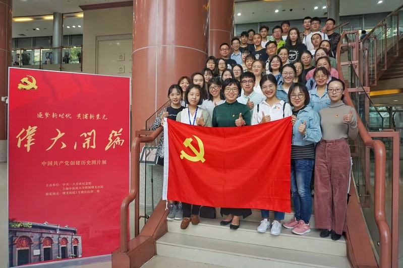 为共同庆祝新中国成立70周年,扎实推进不忘初心、牢记使命主题教育,20191012日AV视频 研究生党总支的全体成员们,在学院党委副书记沈漫老师带领下一同来到了曙光医院住院部2楼,参观《伟大开端——中国共产党创建历史》。