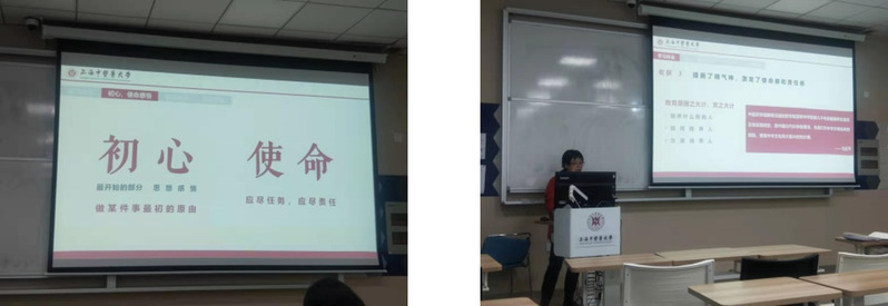 今天的“不忘初心、牢记使命”主题教育专题党课,组织部夏文芳老师从她自身的学习体会展开,倡导我们党员要时刻注重学习,坚持用习近平新时代中国特色社会主义思想武装头脑、指导实践,理论学习会使我们在思想政治上受到洗礼,补充精神之“钙”,并通过老一辈的事迹激励鼓舞我们,激发我们新一代的使命感和责任感,作为中医药学子,在习近平总书记大力提倡中医药发展的当下,我们更应该努力学习,传承好发展好利用好中医药,推动中医药创造性转化、创新性发展,牢记入党誓词和医学生誓言,更好地为人类健康服务。