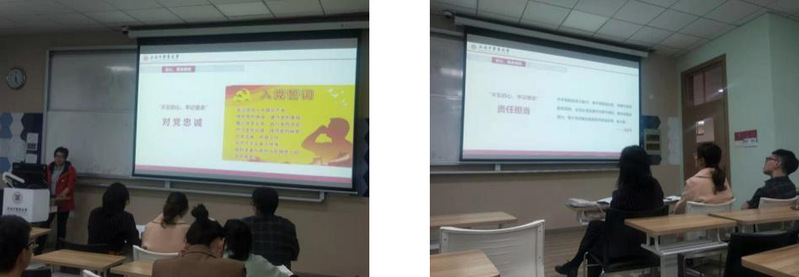 夏老师还对自身的不足和存在的差距进行了自我剖析并提出了改进措施,这也是我们广大学生党员存在的问题,既为我们作出了表率,也指明了我们努力的方向。最后夏老师还对我们党员同志们提出了三点希望: