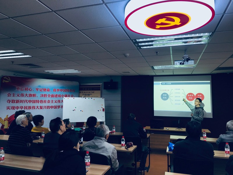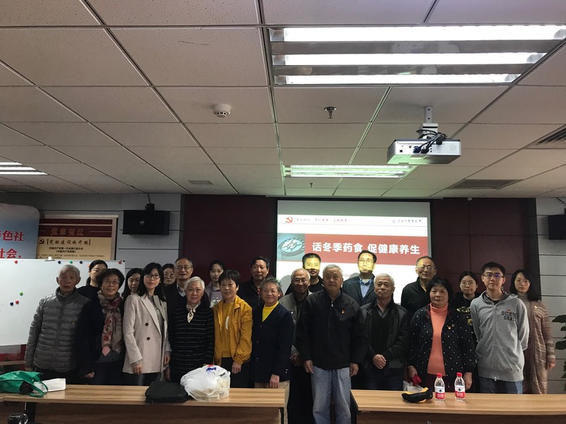 为深入开展“不忘初心、牢记使命”主题教育,推进支部共建,发挥基层党支部的战斗堡垒作用。2019年11月13日,AV视频 研究生党总支的党员同志们在党总支书记郑秀棉老师的带领下来到张江镇社区党建服务中心,与张江江丰居民区党总支共同组织开展了“中医讲座知识—药食养生”活动,由杨熠文同学主持“漫谈冬季养生”的讲座。