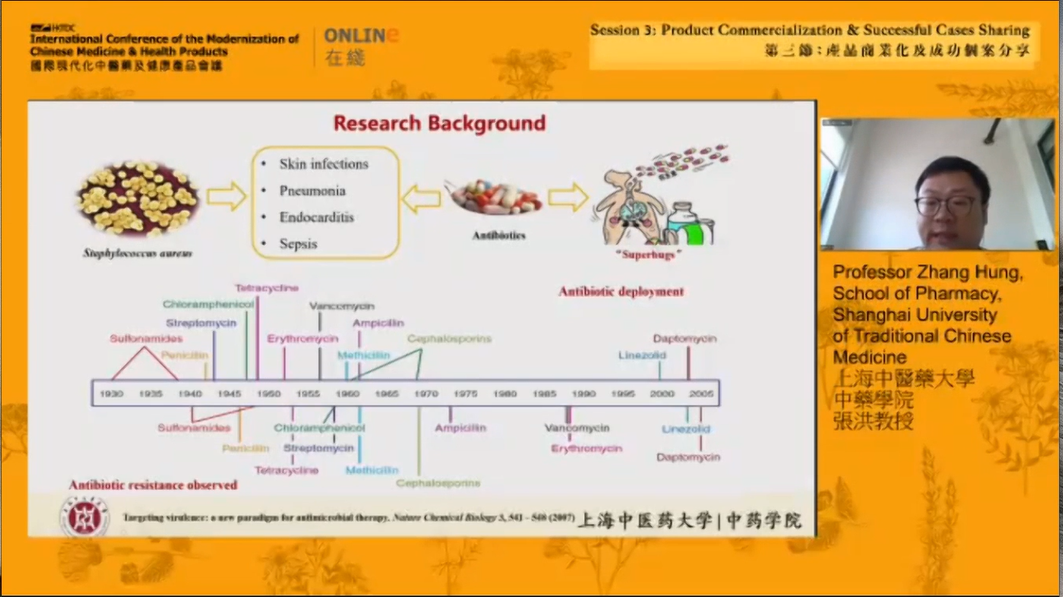 2020年8月14至15日,第19届国际现代化中医药及健康产品会议(ICMCM)在香港会议展览中心举行。由于今年受新冠肺炎疫情影响,本次会议采用线上与线下相结合的方式进行。此次会议由香港贸易发展局与现代化中医药国际协会(MCMIA)联合主办,国家中医药管理局对台港澳中医药交流合作中心及香港5间大学等相关机构协办。AV视频 首席教授徐宏喜院长及现代化中医药国际学会创会董事Harry YEUNG先生担任大会主席。