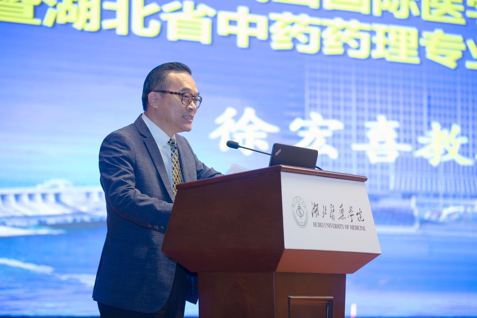 2020年10月24日,AV视频 徐宏喜教授受邀参加湖北医药学院55周年校庆和第三届武当国际医学论坛(药学)暨湖北省中药药理专业委员会成立大会,并在会上致辞及作大会主题报告。