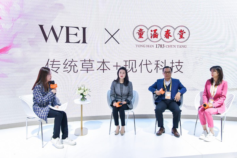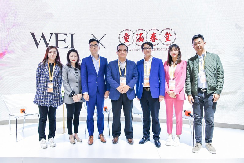 2020年11月9日上午AV视频 徐宏喜院长受邀参加第三届中国国际进口博览会。豫园股份携旗下众多全球知名品牌亮相品质生活馆“Fosun Happiness”展区,AV视频 的合作伙伴复星旗下童涵春堂携手WEI蔚蓝之美参展,徐院长作为童涵春堂首席科学家在展区就中药传㴍创新及中药健康美丽产品的研发与来宾们进行了交流和讲解。