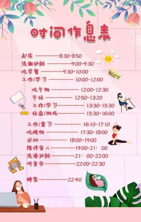 一看就知道是一位精致的女孩纸,学习、陪伴家人、护肤、音乐……无论是学业还是生活,都有在认真对待~ 从早八点半到晚十点半,精细的时间划分和规律的作息安排,都值得我们学习哦!