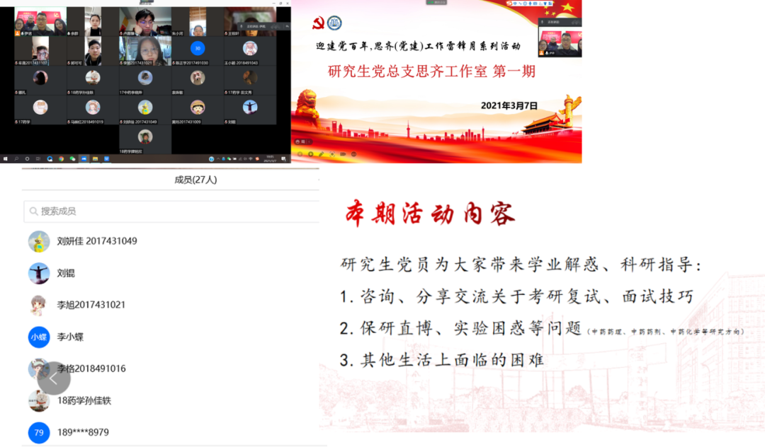 研究生党总支作为全国研究生百强样板党支部,服务本科和指导本科学生,开展线上线下学习和科研指导工作,是研究生党建工作的重要内容。思齐工作室是支部建设打造的一个重要交流平台,每周日安排党员同志值班答疑,旨在利用党员的优势资源,积极为全校学生思想、学习、实验、生活、情感等诸多方面进行思想交流、答疑解惑。在疫情稳定后的今天,思齐工作室重新向大家开放,不同于以往的线下交流模式,首期开放了线上沟通渠道,让不方便前来工作室咨询的同学及时获得在线帮助。