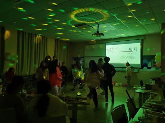 随后,欢快紧张的团体游戏——《抱团取暖》拉开了晚会的帷幕,同学们随着音乐的节奏律动起来,宛如一连串跳动的音符,当音乐声戛然而止,主持人喊出一个数字3时,同学们纷纷就近寻找伙伴抱在一起,有的甚至通过“抢夺”的方式组队,大家在欢声笑语中迅速打成一片。
