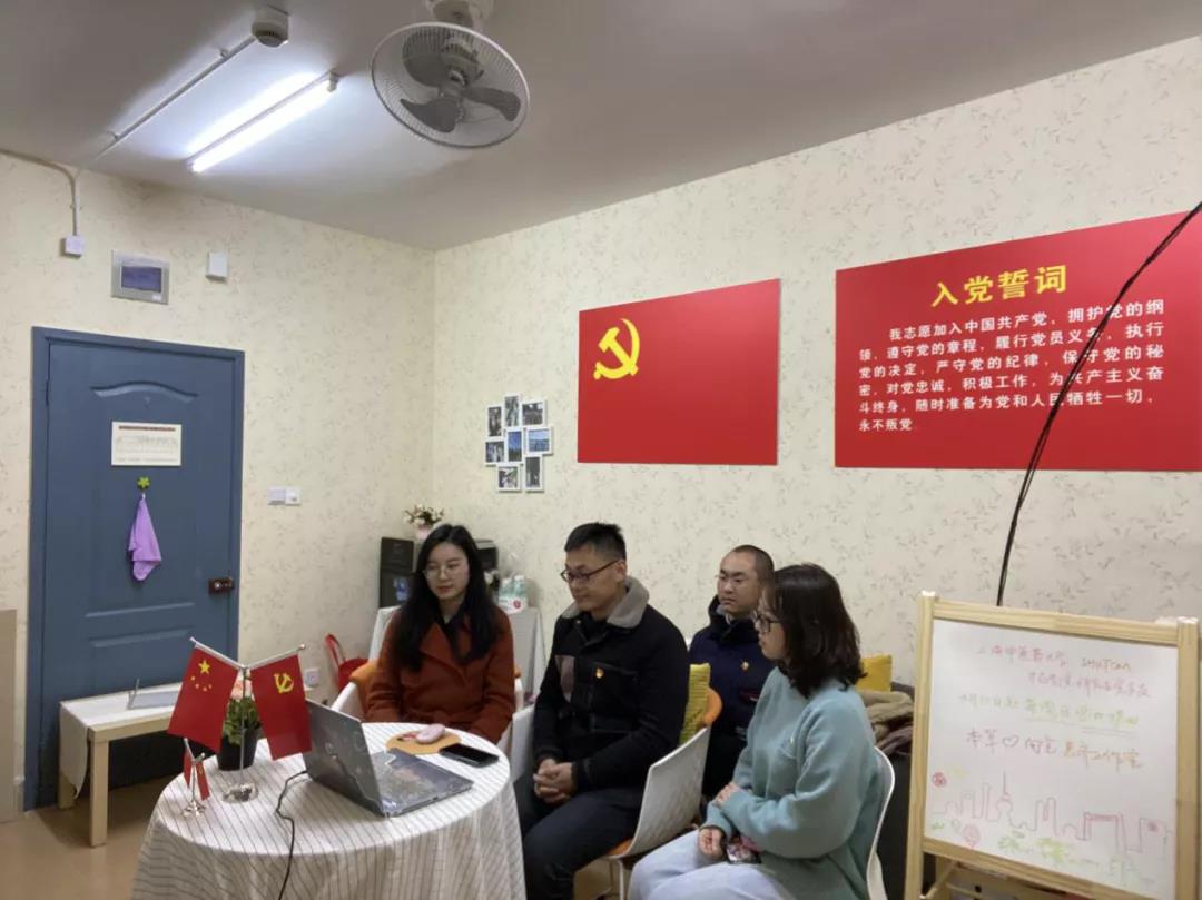202137日晚,四名研究生党员齐聚1619号一楼的思齐工作室,面向AV视频 本科学生,开展第一次线上交流指导活动。在主持人吴龙龙的带领下,组员金诚、郭静雯和李强提前来到工作室,调试线上系统,布置交流现场,并成功和线上辅助答疑的刘锟、余群、李小蝶、郭可可等党员团员通话,协商解答内容。