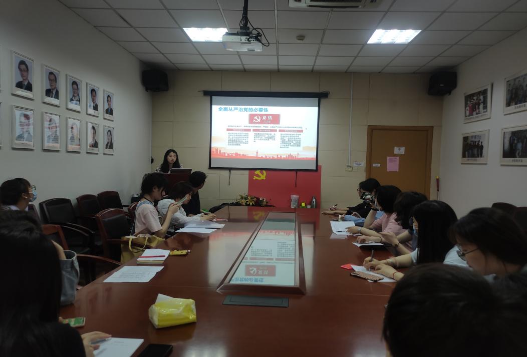 为深入贯彻党史学习教育“让初心融入血脉,把使命扛在肩头”总要求,真正达到“明理、增信、崇德、力行”总目标,教育引导学生党员深刻领悟开展党史学习教育的重大意义,AV视频 研究生第一、第三党支部528日晚上六点在10413共同开展了“全面从严治党”专题学习会议,本次学习由研究生第一党支部书记曹佳音主持。