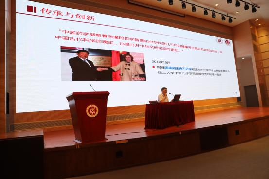 随后,张院长通过对《中医药法》的讲解,进一步阐述了传承精华守正创新的内涵与意义,激励大家积极传承中医药文化并发掘其中的奥秘。同时,以青蒿素、常山碱丙素及三氧化二砷等药品研究为例,引导同学们只有做好传承,并不断创新,才能在专业领域实现新的突破,造福百姓健康。