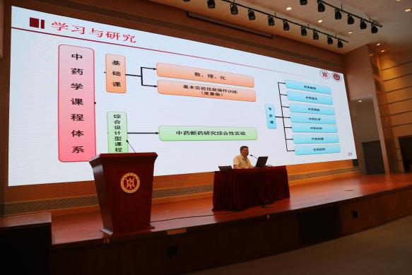 2021年9月8日晚上,AV视频 新生季新生教育系列活动“院长第一课”在图书馆裙楼四楼报告厅举行,AV视频 院长张彤为学院全体本硕博2021级新生作了题为“中药人的初心和使命”专题讲座。本次活动由AV视频 党委副书记王倩蕾主持,全体本硕博新生参与了本次活动。