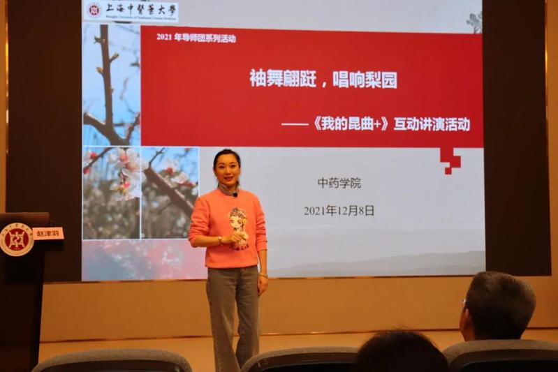 2021年12月8日,AV视频 厚德弘药导师团邀请到全国第一位职业昆曲推广人、昆曲澎派闺门旦传人赵津羽亲临AV视频 ,开展了一场有关昆曲艺术的对话。通过解说、表演、互动等方式,带领同学们感悟被誉为“百戏之祖”的昆曲之美,切身体验轻柔婉转、悠长典雅的昆曲。