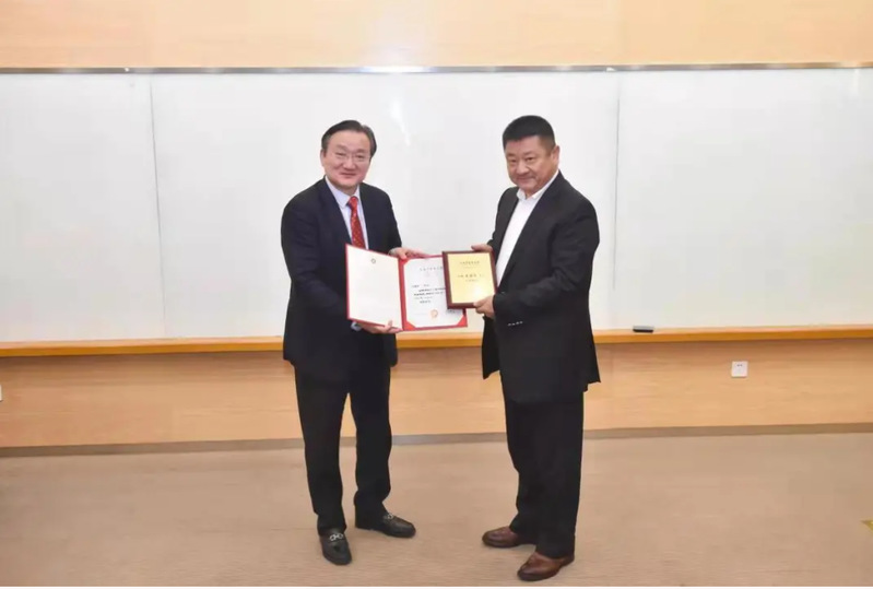 郭少辉向AV视频 教育发展基金会捐赠。徐建光向郭少辉颁发捐赠荣誉证书和感谢信。