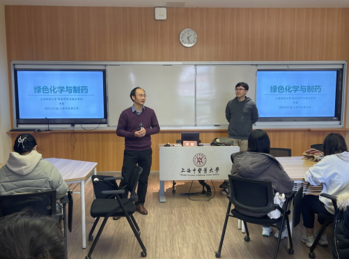 222日下午AV视频 中药创新班“问道本草”学术沙龙第五期在7203教室举行本期由上海科技大学物质科学与技术学院李智副教授带来绿色化学与制药的分享讲座由AV视频 副院长郑昌武主持创新班学生积极参与了本次学术沙龙