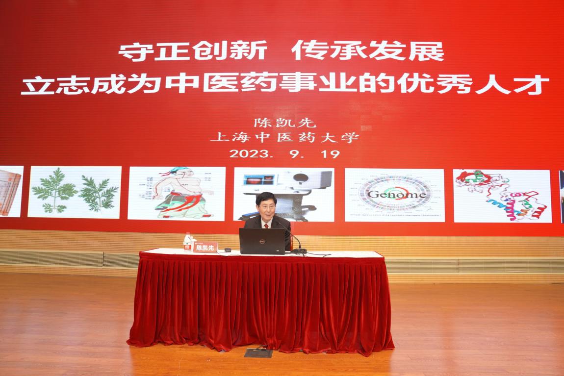 开班仪式后,陈凯先以“守正创新 传承发展——立志成为中医药事业的优秀人才”为主题,面对面和同学们深入交流,系统阐释了中医药在当代的重要价值寄语新生弘扬新时代科学家精神传承中华民族优秀文化为一流大学建设贡献力量,在中医药现代化进程中砥砺奋进。