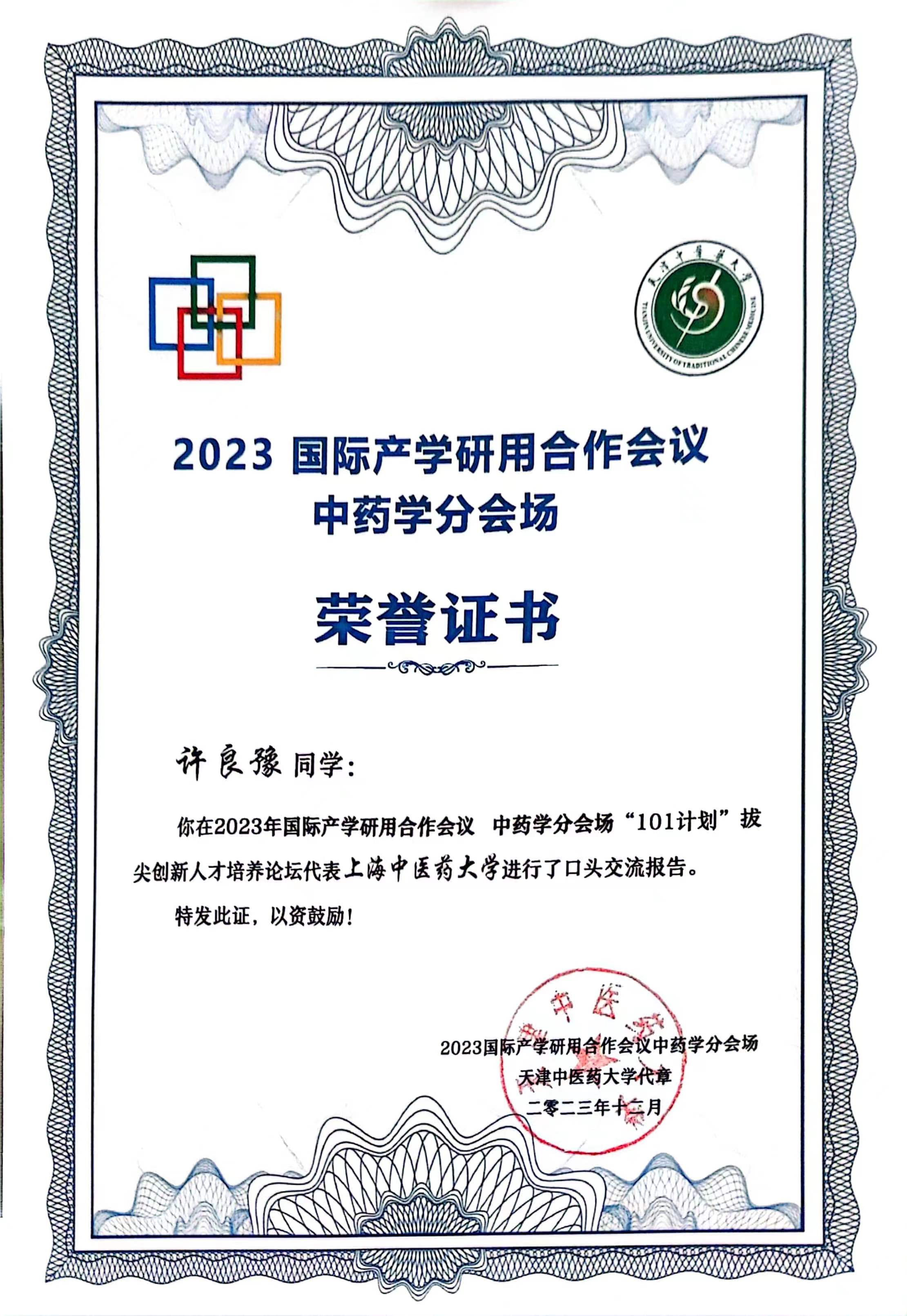 为响应教育部学校规划建设发展中心的相关工作要求,深入探讨拔尖人才培养中的关键问题,推动中医药事业的高质量发展,近日,2023国际产学研用合作会议中药学分会场在天津中医药大学举行,AV视频 名誉院长徐宏喜,副院长郑昌武、教务副主任郑敏与3名2023级中药学创新班同学分别参与主会场和“101计划”拔尖创新人才培养分论坛交流。