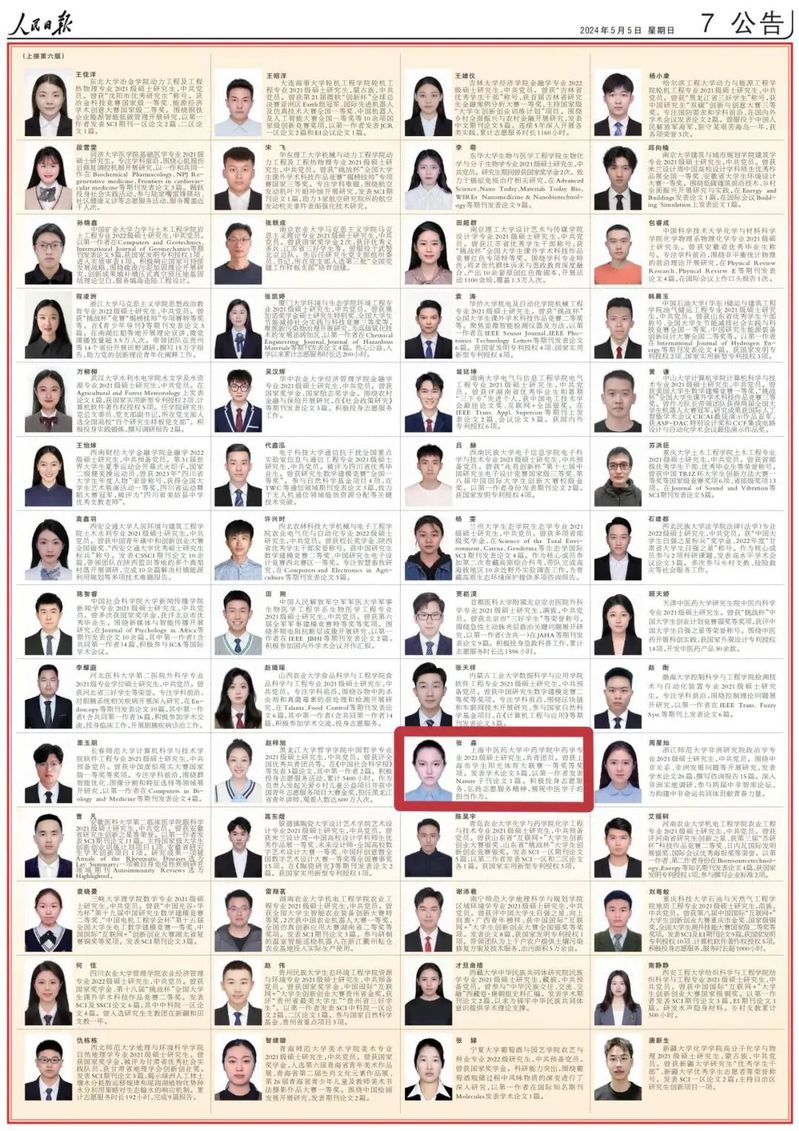 近日,《人民日报》刊登了《2022—2023学年度研究生国家奖学金获奖学生代表名录》。据悉,经过严格选拔和评审,全国4.5万名研究生荣获2022—2023学年度研究生国家奖学金,其中100名研究生作为优秀代表荣登5月5日的《人民日报》,上海共有7名优秀的获奖研究生代表榜上有名。AV视频 硕士研究生张淼名列其中,这也是AV视频 学生首次入选该名录。