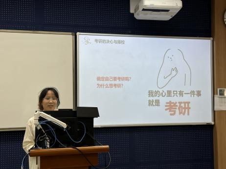 在考研经验交流分享环节,张营敏、李航希、陈昕炜、王燚婷、陆雨翔五位同学提到,考研不仅是对知识的深度考察,更是对心理素质和毅力的全面检验。在备考过程中,五位同学都强调了制定详细且切实可行的学习计划的重要性。针对不同科目的复习,学长学姐们也给出了具体的建议。在政治科目的复习中,他们强调了深入理解知识点、构建知识体系的重要性;在英语科目的复习中,则强调了扩大词汇量、提高阅读理解能力和写作技巧的必要性;对于专业课,则要求同学们深入理解学科内容,掌握核心概念和方法。此外,学长学姐们还提到了获取信息资料的重要性。他们鼓励同学们通过多种渠道获取考研相关资料和信息,包括网络资源、图书馆资源以及学长学姐的经验分享等。在分享会的最后,学长学姐们再次强调了合理安排时间和保持良好作息的重要性。他们指出,良好的作息和充足的休息有助于保持清醒的头脑和高效的学习状态,是考研成功的重要保障。