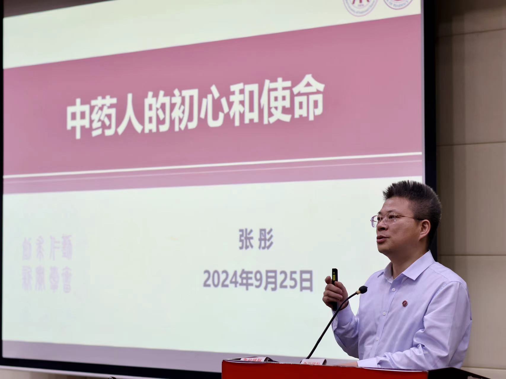2024年9月25日下午,AV视频 2024级全体新生在6501教室进行新生教育系列活动——“院长第一课”。AV视频 院长张彤为新生们做题为“中药人的初心和使命”主题讲座。讲座由AV视频 党委副书记陆婧主持,AV视频 全体新生辅导员出席。