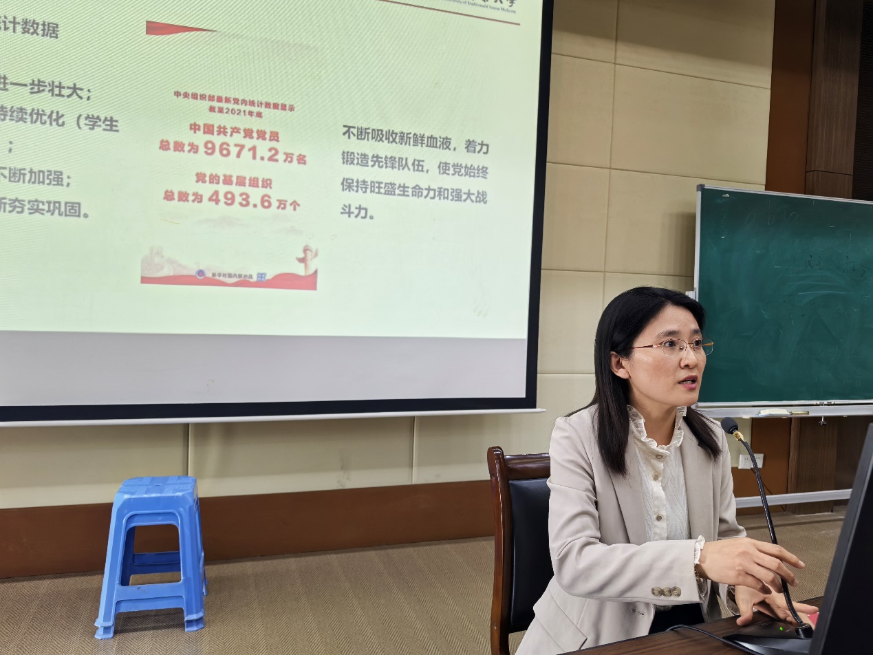 何丹丹介绍了中国共产党的基本情况,和正确的入党动机。并引导新生学习党章,坚持将政治标准放在首位是成为一名合格党员的核心要求。