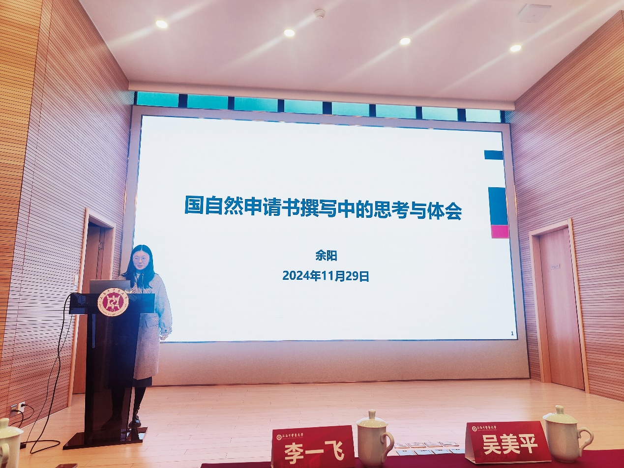 在经验交流分享环节,学院上一年度获得国自然项目资助的老师逐一为大家带来申报经验和心得分享。张永太老师从“中药纳米制剂研究选题策略”出发,分享了他在国家自然科学基金选题方面的独到见解;张莉老师结合自身申报经验分享了“基础与创新在国自然申报中的双轮驱动”,强调了个人研究基础与创新思维结合在成功获得资助方面的重要作用;慈天元老师则以“国自然申报心得交流-以‘申报口’的选择为例”为题,分享了切实可行的申请代码的选择技巧郭夫江老师以“申请案例分享-以温郁金项目申请为例”为主题,详细讲述了自己的申报过程中和心得体会;李园园老师以“国自然之小确幸”为题,从小白标书失败之路、本子的“打磨”与思考、小创新“锦上添花”三个方面分享了她在申报国家自然科学基金过程中的点滴幸福和感悟余阳老师则从“国自然申请书撰写中的思考与体会”出发,提供了切实可用的撰写申请书技巧;刘梦璠老师则以“正确的赛道+努力+坚持=成功”为题,分享在申报国自然的过程中,要端正态度,选择正确的方向,坚持不懈地努力。