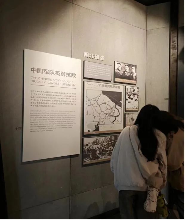 参观整个纪念馆,让我们深刻体会到在深重的民族危机面前,抗日民族统一战线是中国人民赢得抗日胜利不可或缺的重要因素。一支武器设备明显处于劣势的军队应战一群装备精良野心勃勃的侵略者,整整牵制住敌方长达三个月的时间,他们凭什么可以做到这点?就凭着他们对国家至死不渝的深沉大爱,就凭着他们那股“毅魄归来日,灵旗空际看”的英雄气概!