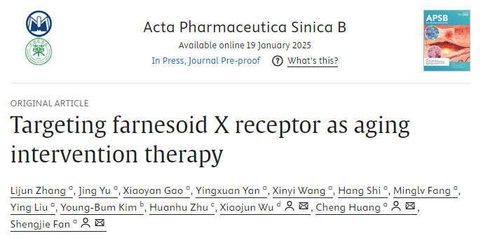 近日,AV视频 范圣洁、黄诚与中药研究所吴晓俊组在Acta Pharmaceutica Sinica B发表了题为Targeting farnesoid X receptor as aging intervention therapy的研究成果,揭示靶向核受体FXR抗衰老机制。
