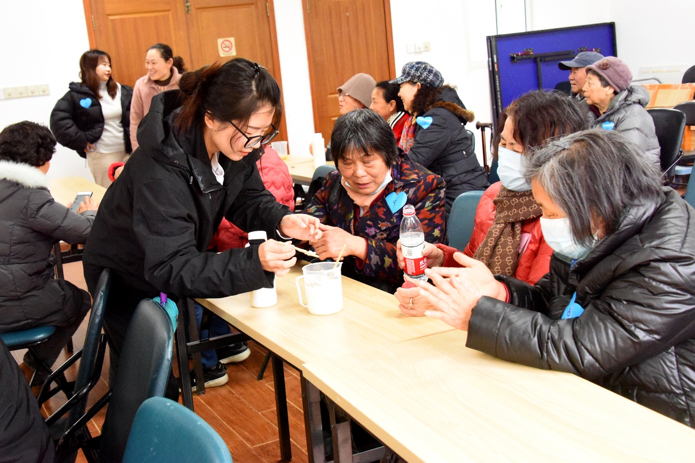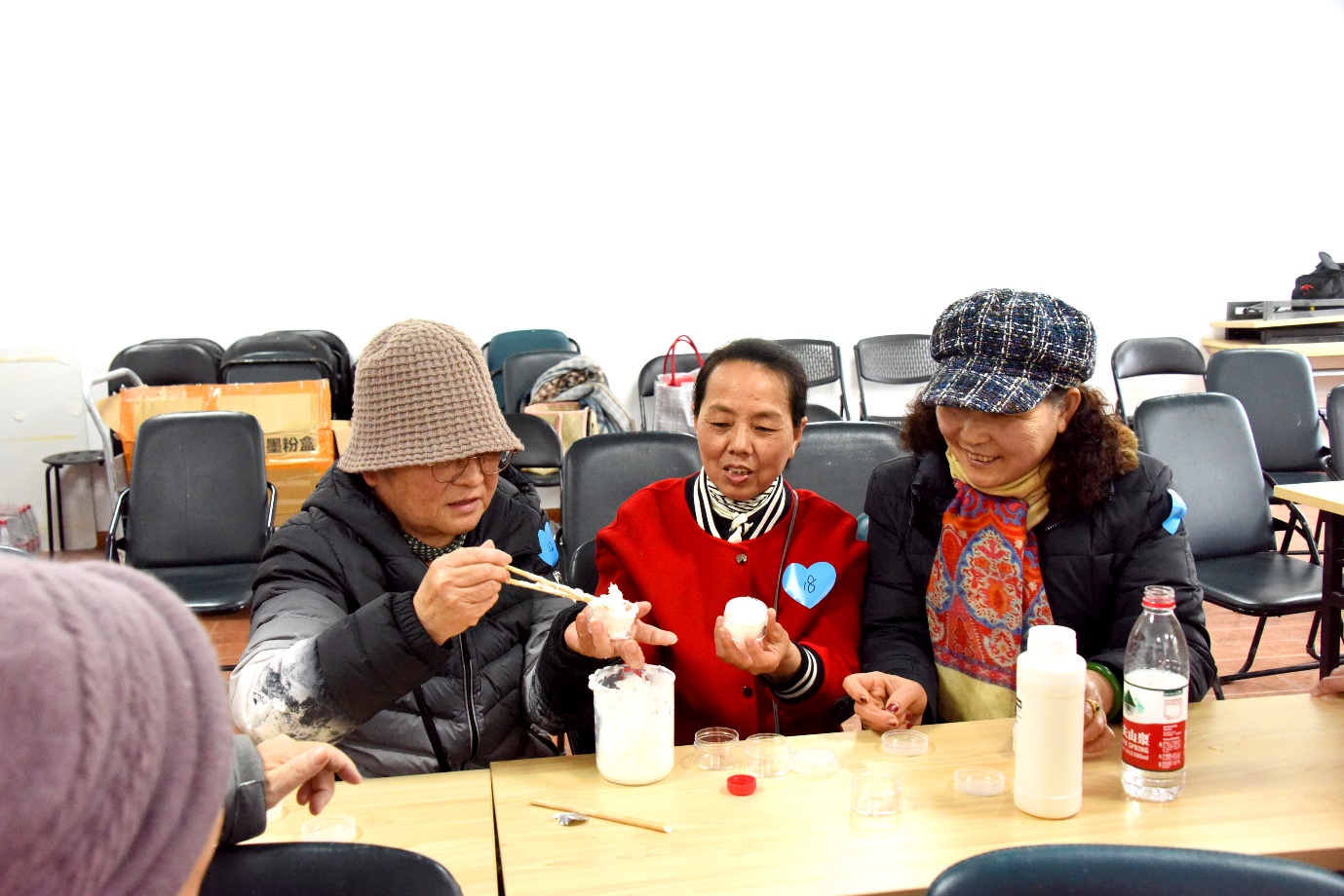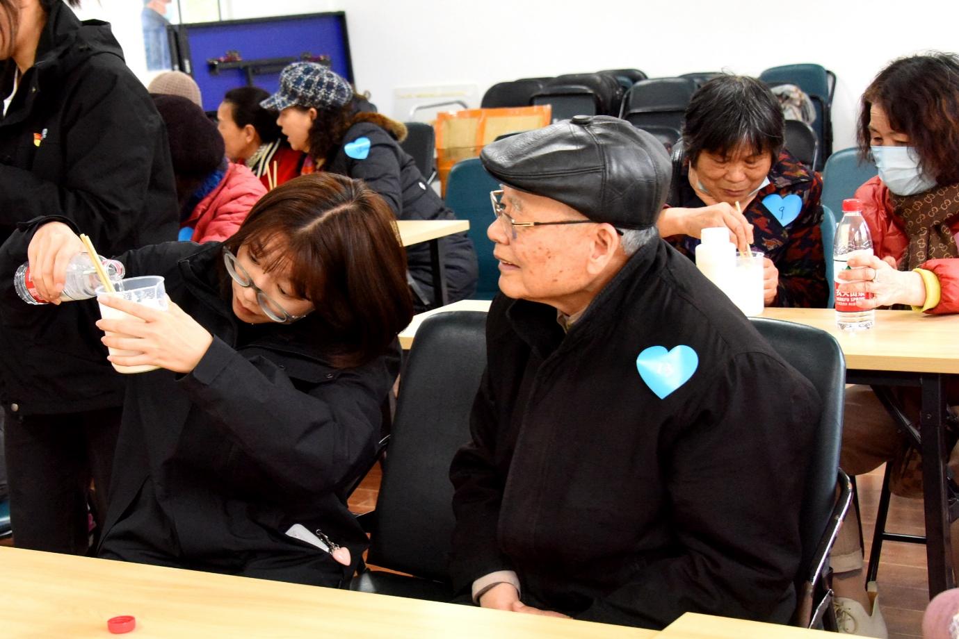 与此同时,AV视频 研究生党员和候诊的老人们开启了专场的DIY护手霜活动。橄榄油、甘油、乳化剂、水等原料,在学生党员的带领下,严谨、认真的叔叔阿姨成功制作了护手霜,也见证了水乳乳化融合的神奇现象,轻轻涂抹在手上时,一张张洋溢着成就感的笑脸,灿烂又温暖。