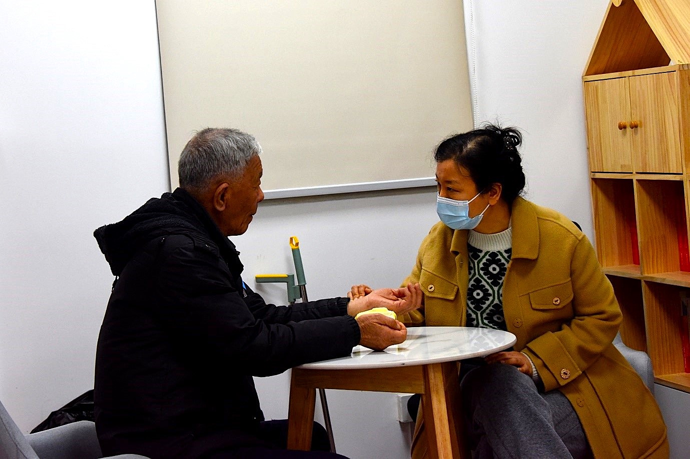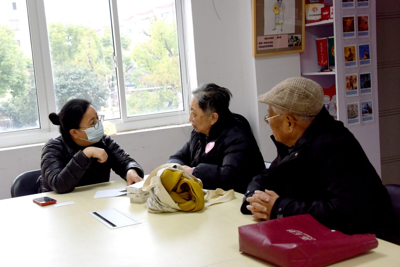 义诊进行时,莘庄镇莘城苑居委会为前来参加活动的老人发放了号牌,老人们按照号牌叫号有序进入诊室,由王海颖教授和徐琎副教授分别为他们进行把脉问诊和开方。