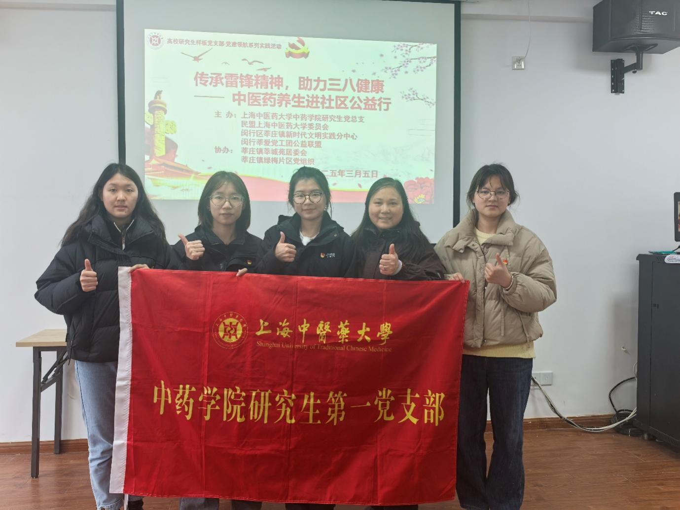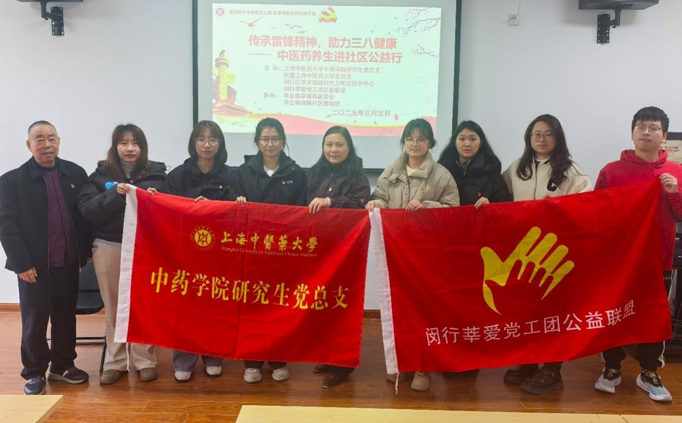 2025年3月5日,“传承雷锋精神,助力三八健康” 中医药养生进社区公益行在闵行区莘庄镇莘城苑顺利进行。本次活动由民盟AV视频 委员会、AV视频 研究生党总支、闵行区莘庄镇新时代文明实践分中心、闵行莘爱党工团公益联盟主办,莘庄镇莘城苑居委会、莘庄镇绿梅片区党组织协办。