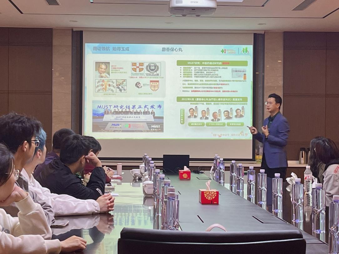 活动伊始,和黄药业相关负责人向师生们详细介绍了公司的发展历程、AV视频,还详细讲解了各类产品的研发、生产和市场定位。作为一家集中药研发、生产、销售于一体的现代化企业,其拳头产品如麝香保心丸、胆宁片等,不仅在国内市场广受认可,更在国际舞台上展现了中药的独特价值。通过这一环节,同学们对中医药企业的运营模式有了初步的认识,打破了书本知识的局限。