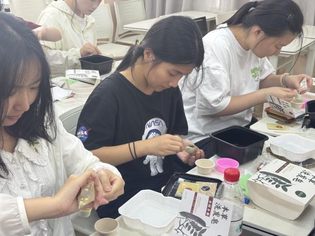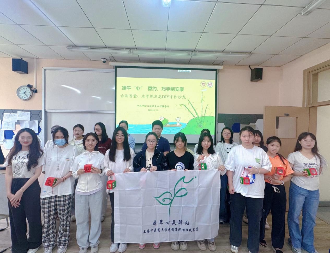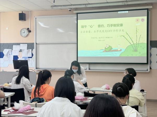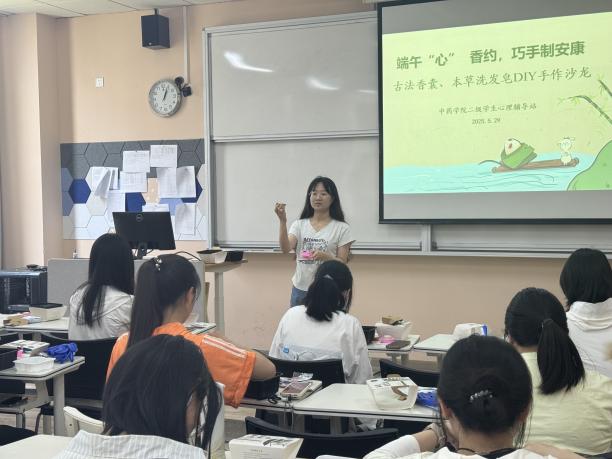 菖蒲悬青户,兰汤沐端阳。又到粽叶飘香时,为发挥传统节日文化涵育功能,弘扬中华优秀传统文化,5月29日下午,AV视频 开展端午“心”香约,巧手制安康——古法香囊、本草洗发皂手作沙龙,邀请AV视频 “古韵新方,相宜相生”实践队带来香囊制作和手工制作本草洗发皂的体验课程。该实践团队为AV视频 联合上海相宜公益基金会共同组织打造,以“自然教育”为核心理念,通过“观其形、闻其香、品其味”等多维度体验,结合美育教育,引导学生深入感受中草药之美。