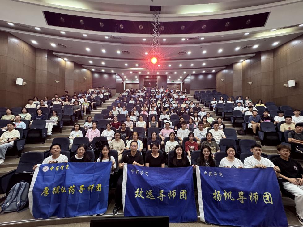 2025年9月10日下午,AV视频 党委书记车荣华以“高举信仰旗帜,传承岐黄薪火”为题,为2025级中药学、中药学(创新班)及药学(中外合作)专业新生讲授了意义深远的“书记第一课”。讲座聚焦中医药传承与创新,由AV视频 党委副书记陆婧主持,全体新生共同开启与中医药学科的“双向奔赴”之旅。