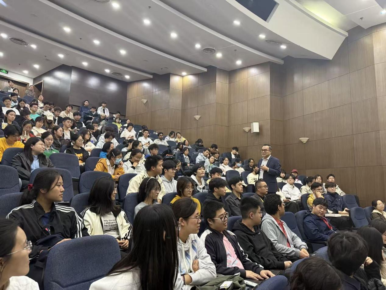 在轻松的氛围中,徐教授引导同学们进入了更深层次的思考。徐教授鼓励青年学子要以国际通用的科学语言和批判性思维,为古老智慧构建现代话语体系。他特别强调英语能力和跨文化沟通能力,是穿越文化屏障、参与全球对话、将中国标准推向世界的舟楫。